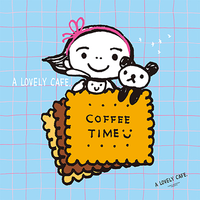 本展では、「A LOVELY CAFE.」をテーマにした新作を中心に、オリジナルキャラクター「よしことクマオ」のフレーム作品やキャンバス作品の展示販売のほか、ポストカードやTシャツ、マルシェバッグ、アクリルスタンド、キーホルダーなど‥‥